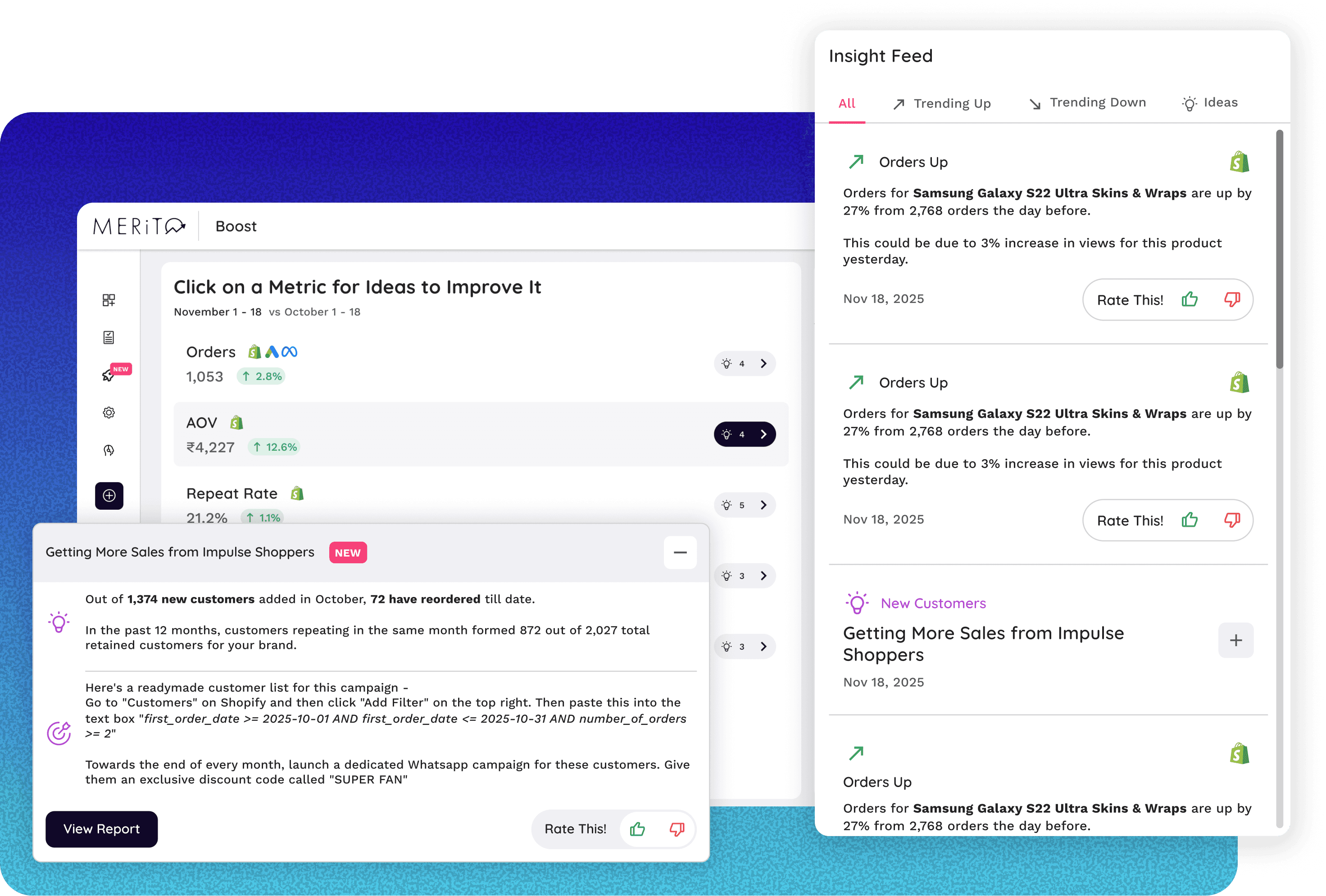 I helped D2C brands act faster on their data by designing a feature that turned reports into simple marketing ideas and insights.