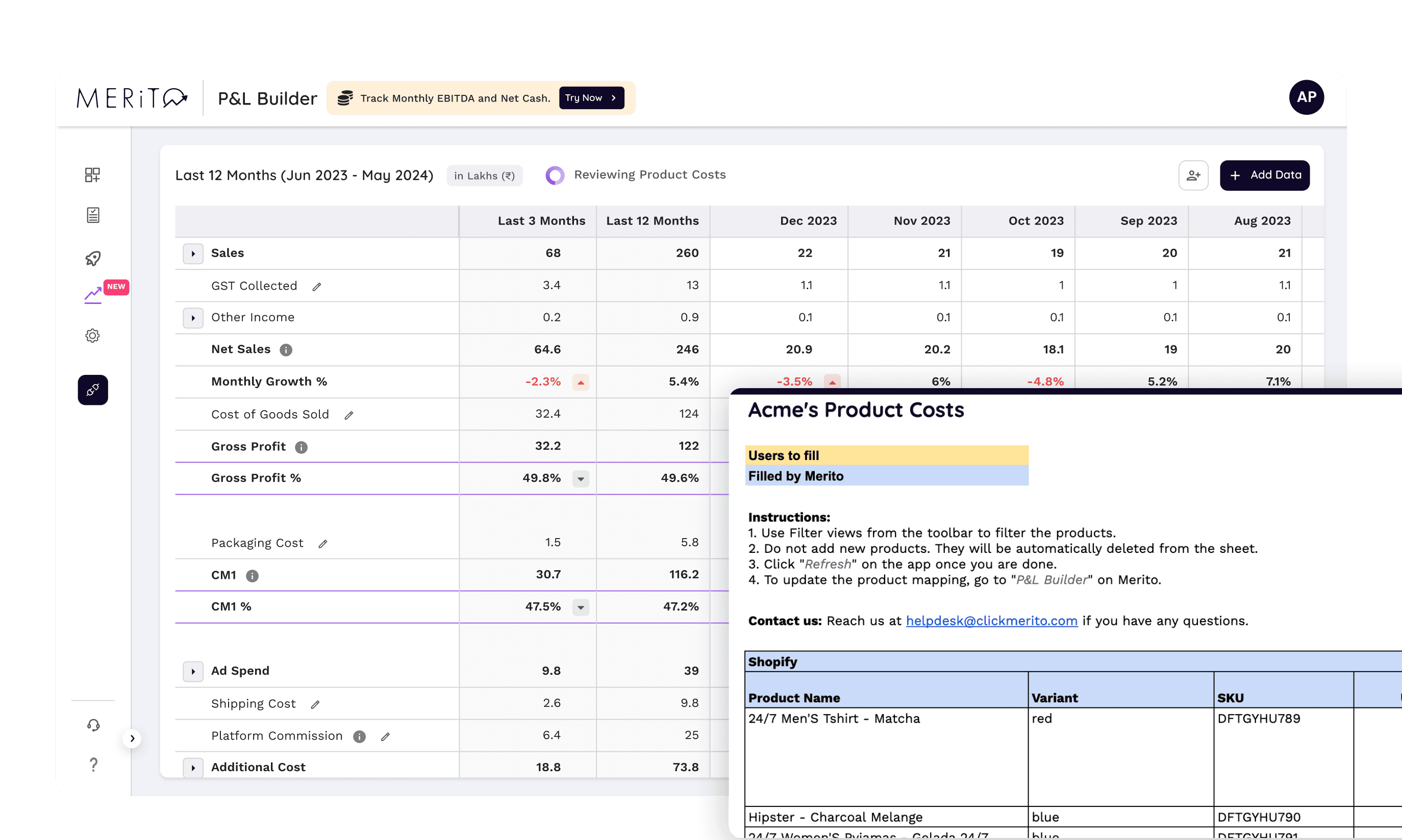 Designed the P&L Builder to give brands a single financial statement from all connected channels.