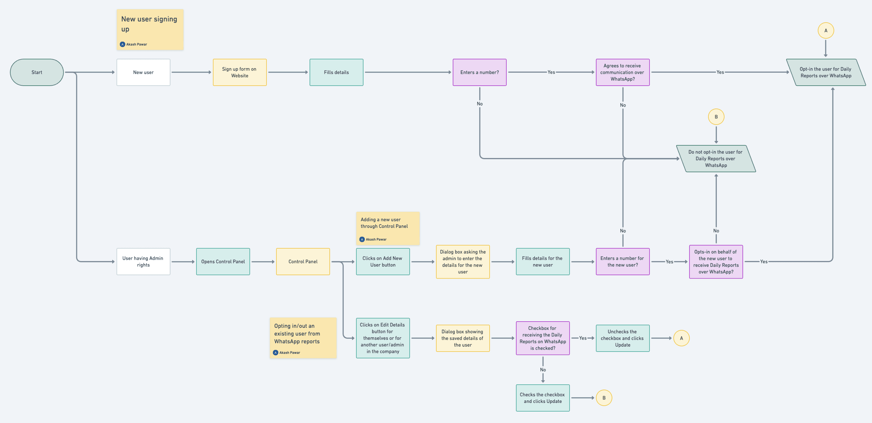 Users could turn on WhatsApp reports through the user management panel. New users could opt in while signing up.