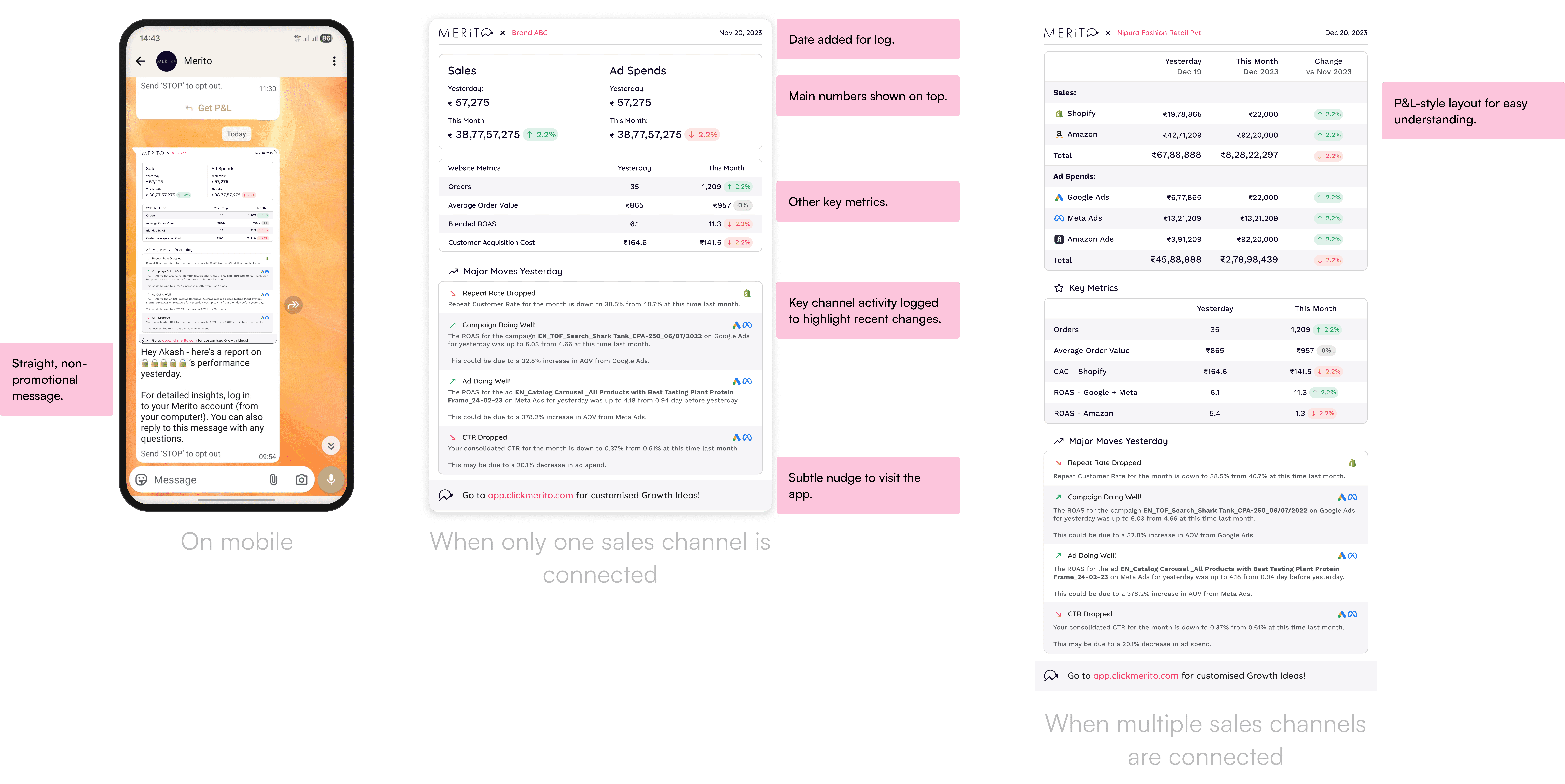 I helped Merito increase daily engagement by launching automated WhatsApp reports that replaced unreliable email reports.